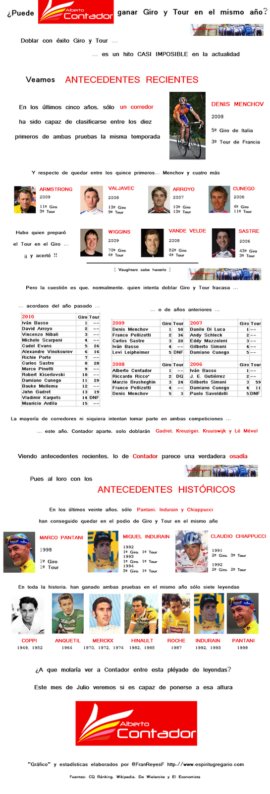 Destronado por su torpeza en el descenso, perdido en la guerra de nervios sostenida con Contaodr, víctima del escarnio del mundillo ciclista, Andy Schleck defendió su honra de la única manera posible en la 18ª etapa del Tour. Un ataque lejano en el Izoard le permitió pasar en solitario por el paraje lunar de la Casse Desserte, como los grandes campeones de Bobet, y rematar junto a un Leopard excelente aquella jornada la faena en la subida postrera al Galibier mientras el resto de favoritos se miraban, acusadores. Esta épica ofensiva de sesenta kilómetros puso el Tour patas arriba, eliminó a grandes candidatos a todo como Alberto Contador o Samuel Sánchez y revindicó al luxemburgués ante esa parte del Ciclismo que le consideraba aniñado y sobrevalorado. Su ataque no valió para ganar el Tour de Francia, pero sí le granjeó el respeto de todo el deporte. Y ese logro, intangible, quizá valga más que un jersey amarillo.